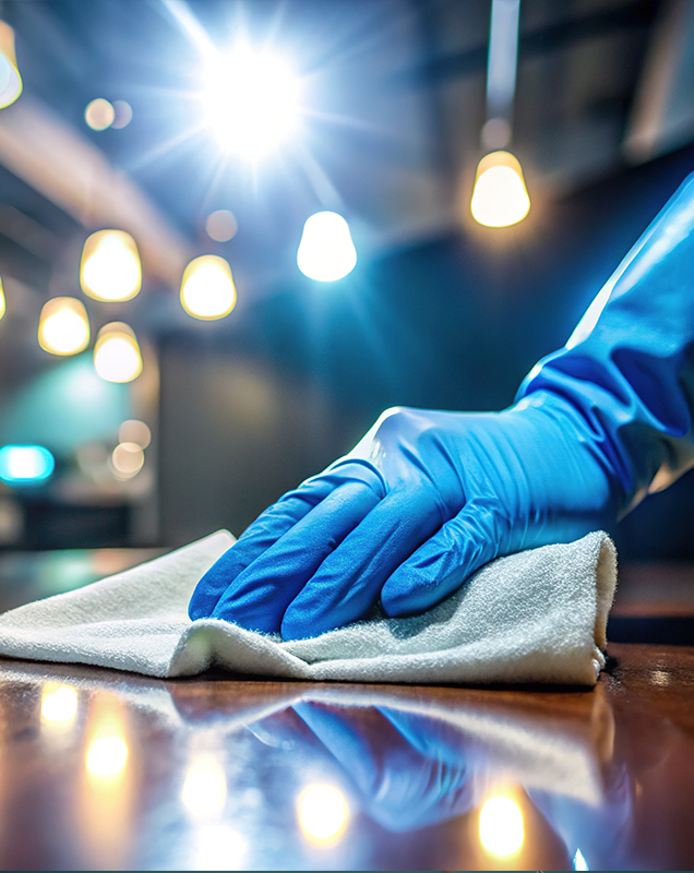 - Désinfection des surfaces inertes : traitement des tables, sols, murs, poignées de portes et tout autre support fréquemment touché pour éliminer les agents pathogènes.